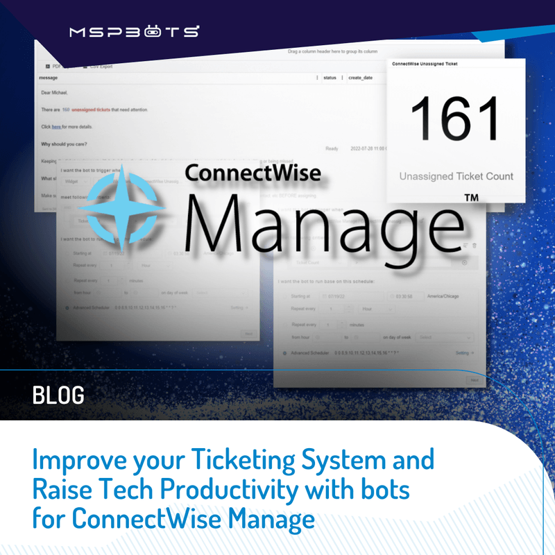 MSPBots • December 1, 2022 Improve Your Ticketing System and Raise Tech Productivity with Bots for ConnectWise Manage Read More